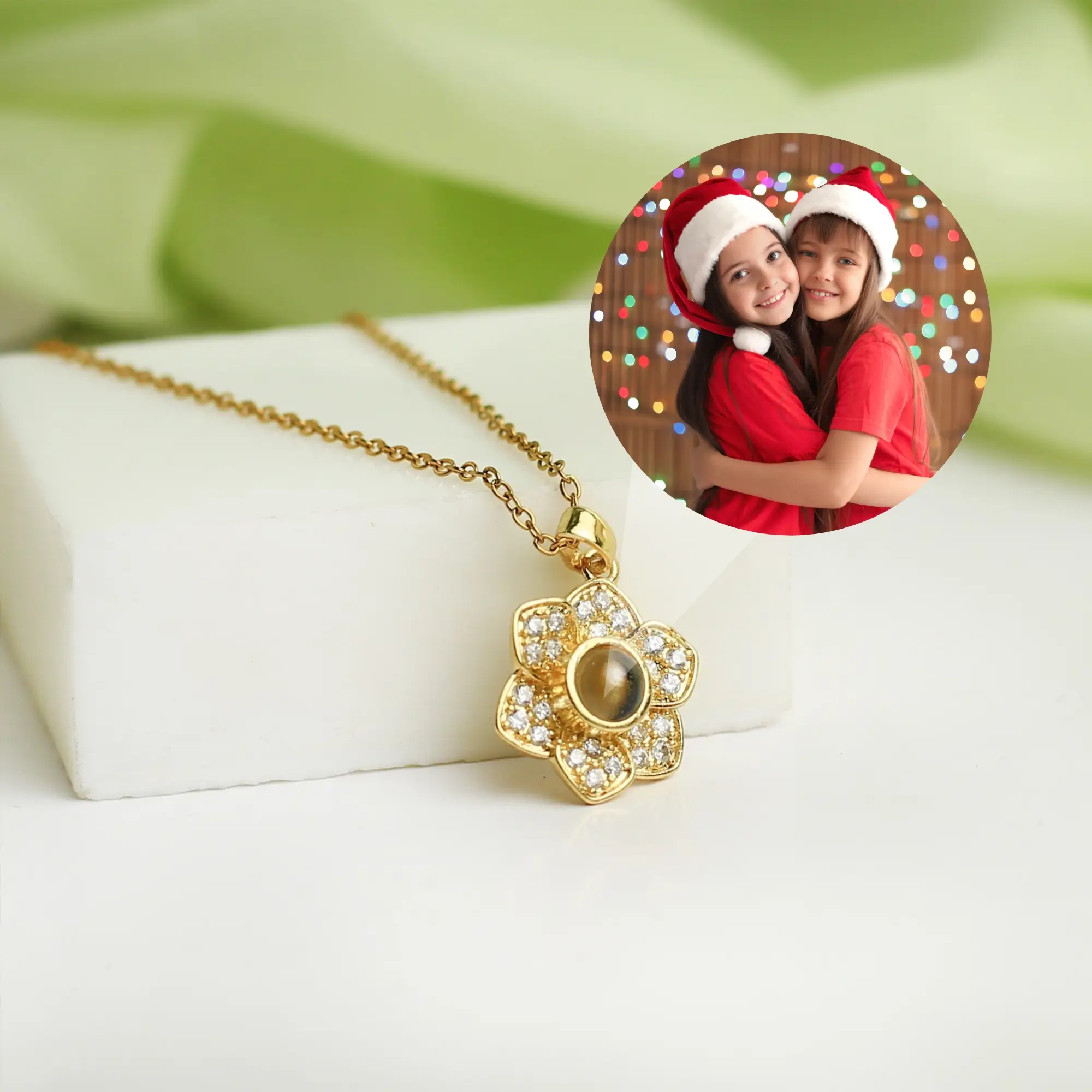 Soft, radiant, and full of meaning — this blooming flower projection necklace captures the beauty of love in full bloom. Look closely into its sparkling petals, and your hidden photo appears within the heart of the flower, glowing gently like a memory reborn through light.