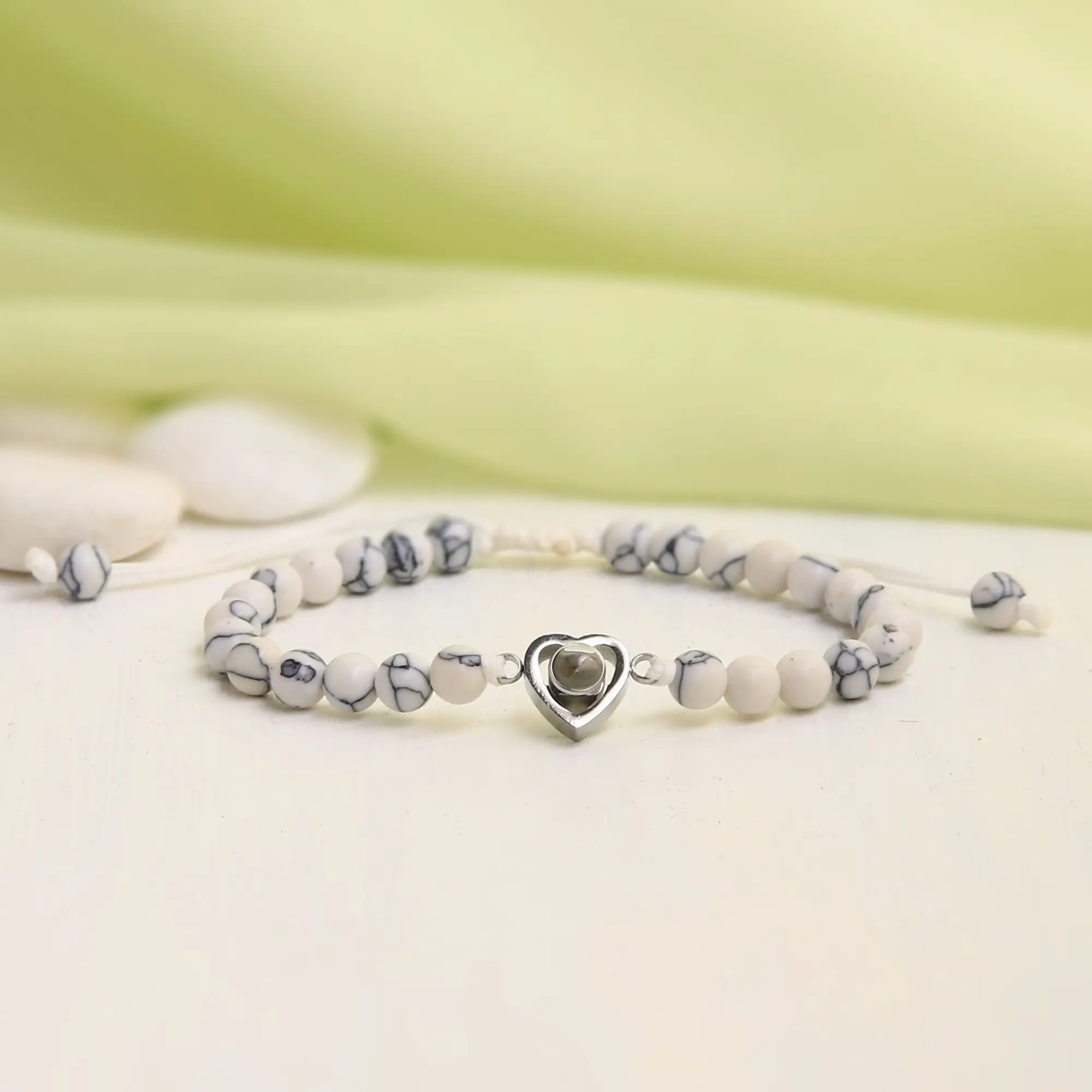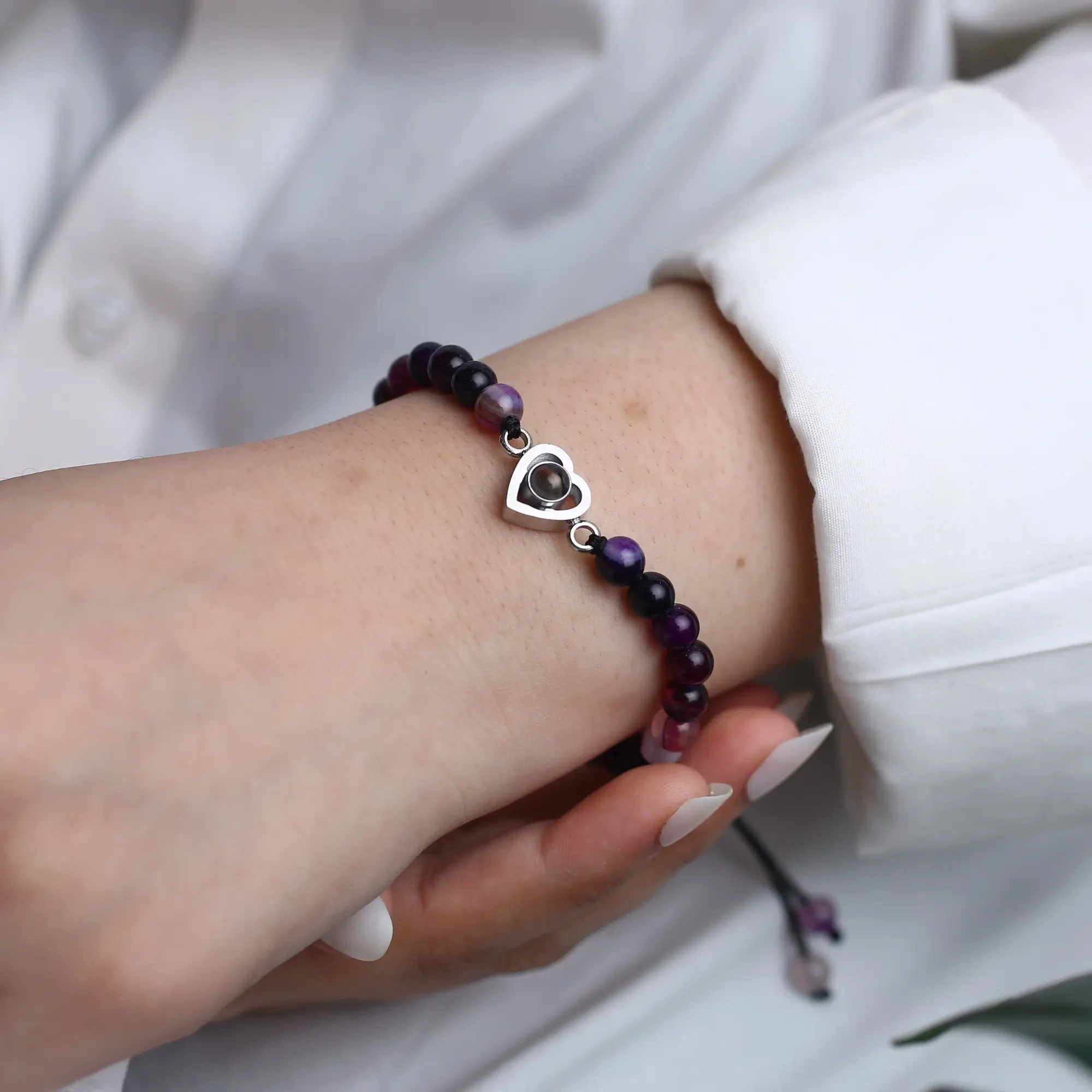 Delicate frosted stones meet a graceful heart charm — and hidden within is a secret photo, a memory only you carry. This bracelet is more than jewelry; it’s a keepsake of love, friendship, and the moments that matter most. The soft frosted beads paired with the cherish heart design make it timeless, personal, and full of meaning.