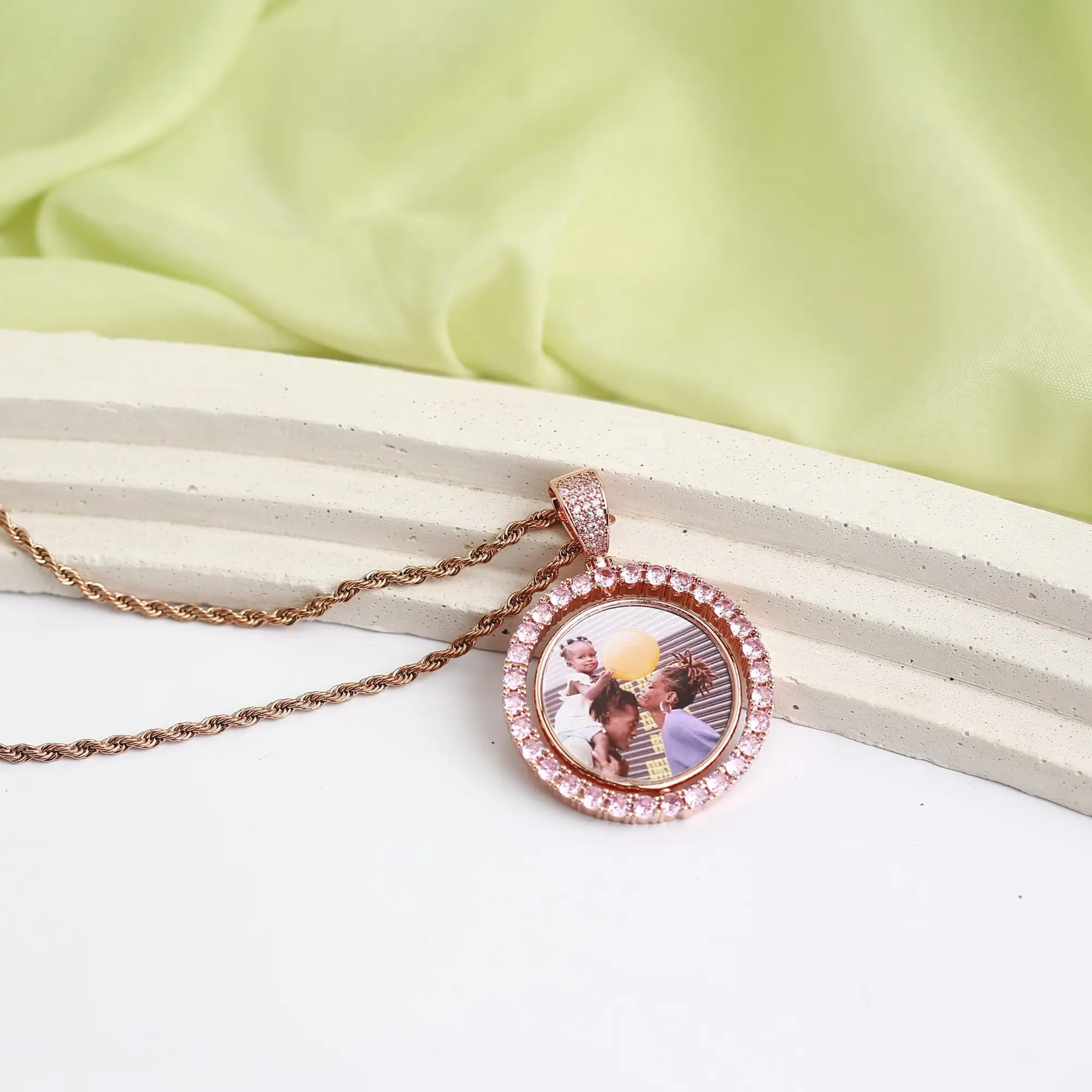 Beautifully crafted and full of meaning, this spinning pendant tells two stories in one. With custom photos engraved on both sides, it gently rotates to reveal the faces, moments, or memories you hold closest. Each turn catches the light — and a feeling — connecting past and present in one timeless keepsake.