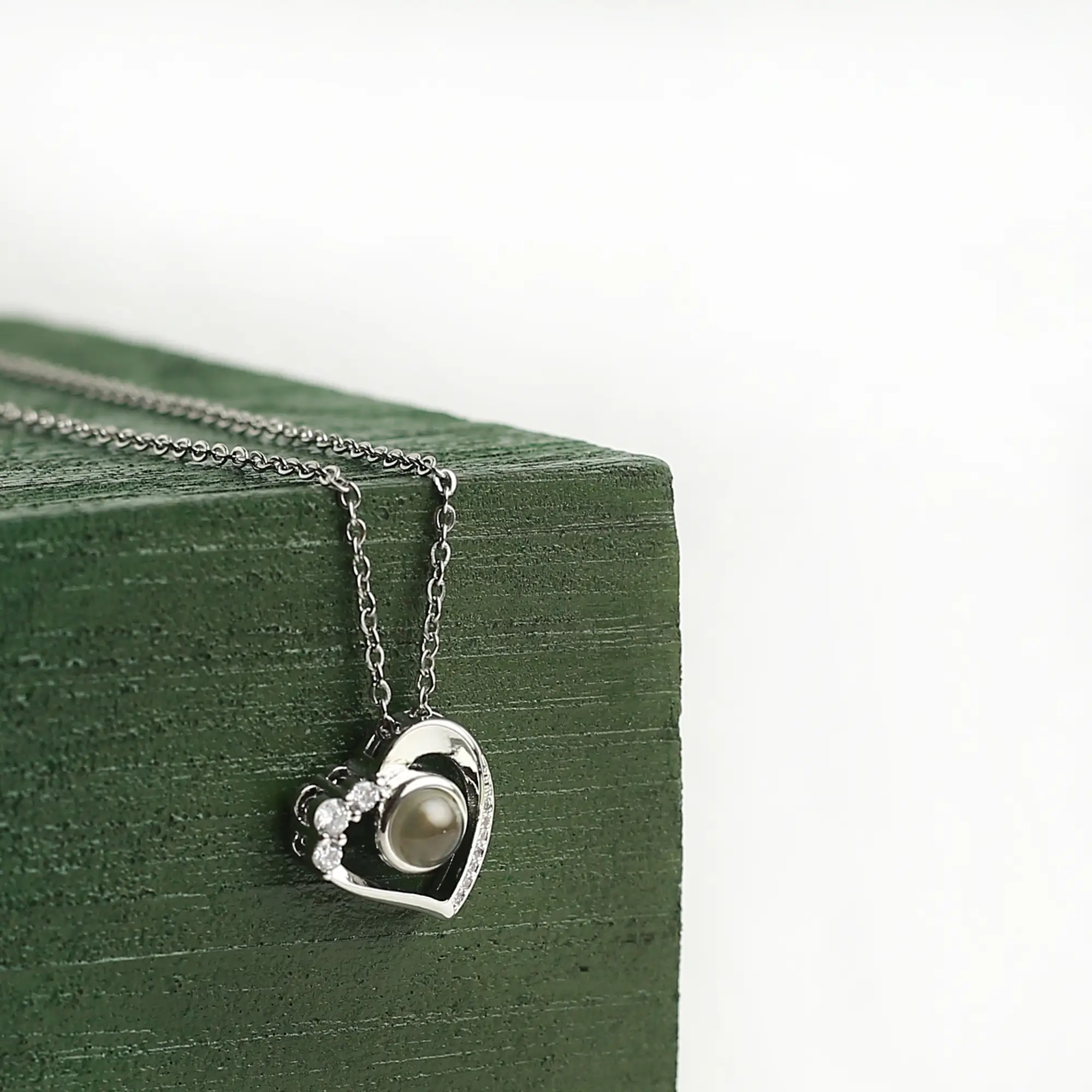 Delicate yet powerful, this endless love projection necklace is a promise that shines forever. The elegant heart-and-infinity design holds a hidden photo inside — a secret moment only visible when light passes through. Each glimmer tells a story of affection that knows no end, a reflection of love that lives beyond time.