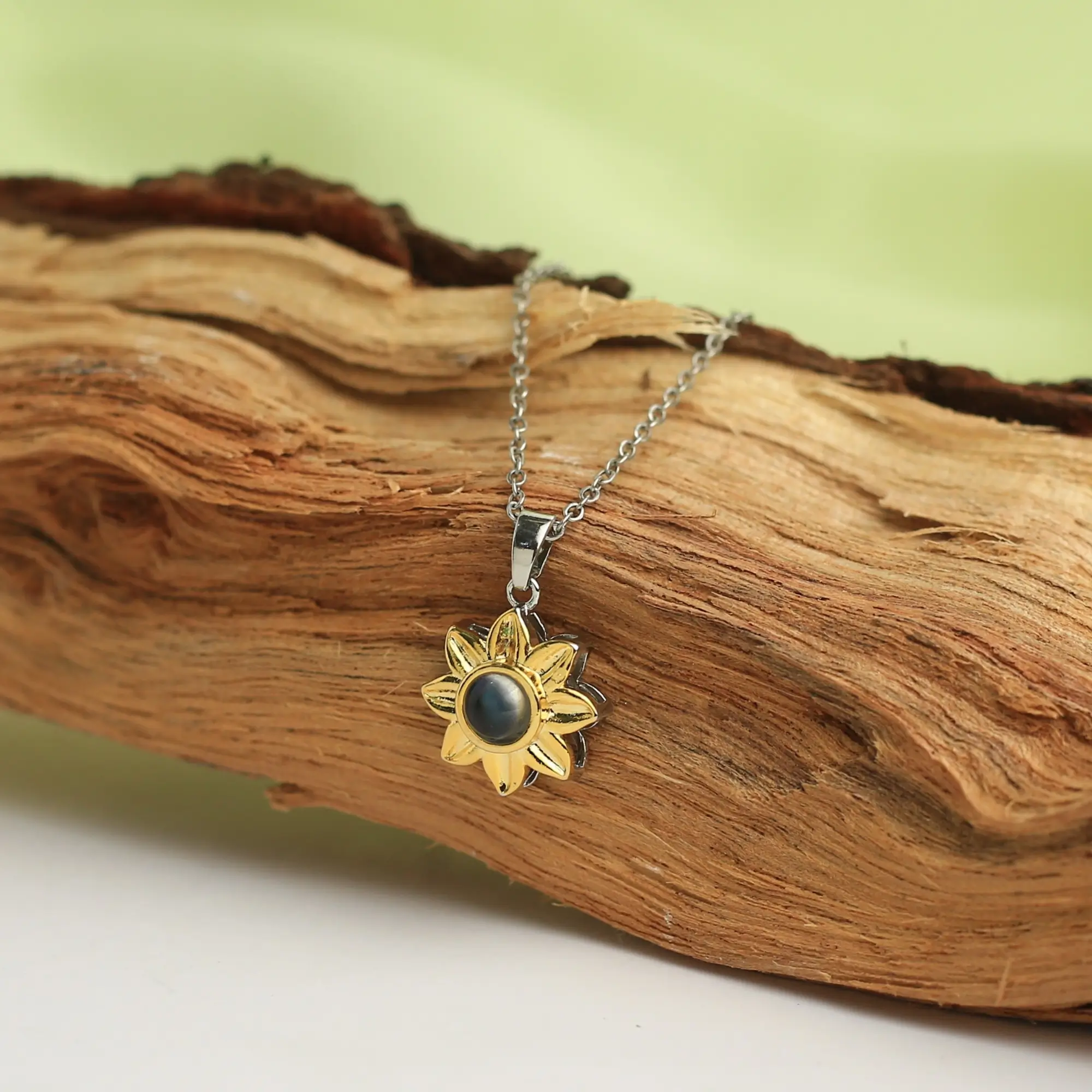 Like sunlight captured in a bloom, this golden bloom projection necklace radiates warmth and love. Within its golden petals lies a secret — a hidden photo that glows softly when light passes through, revealing a memory too precious to fade.
