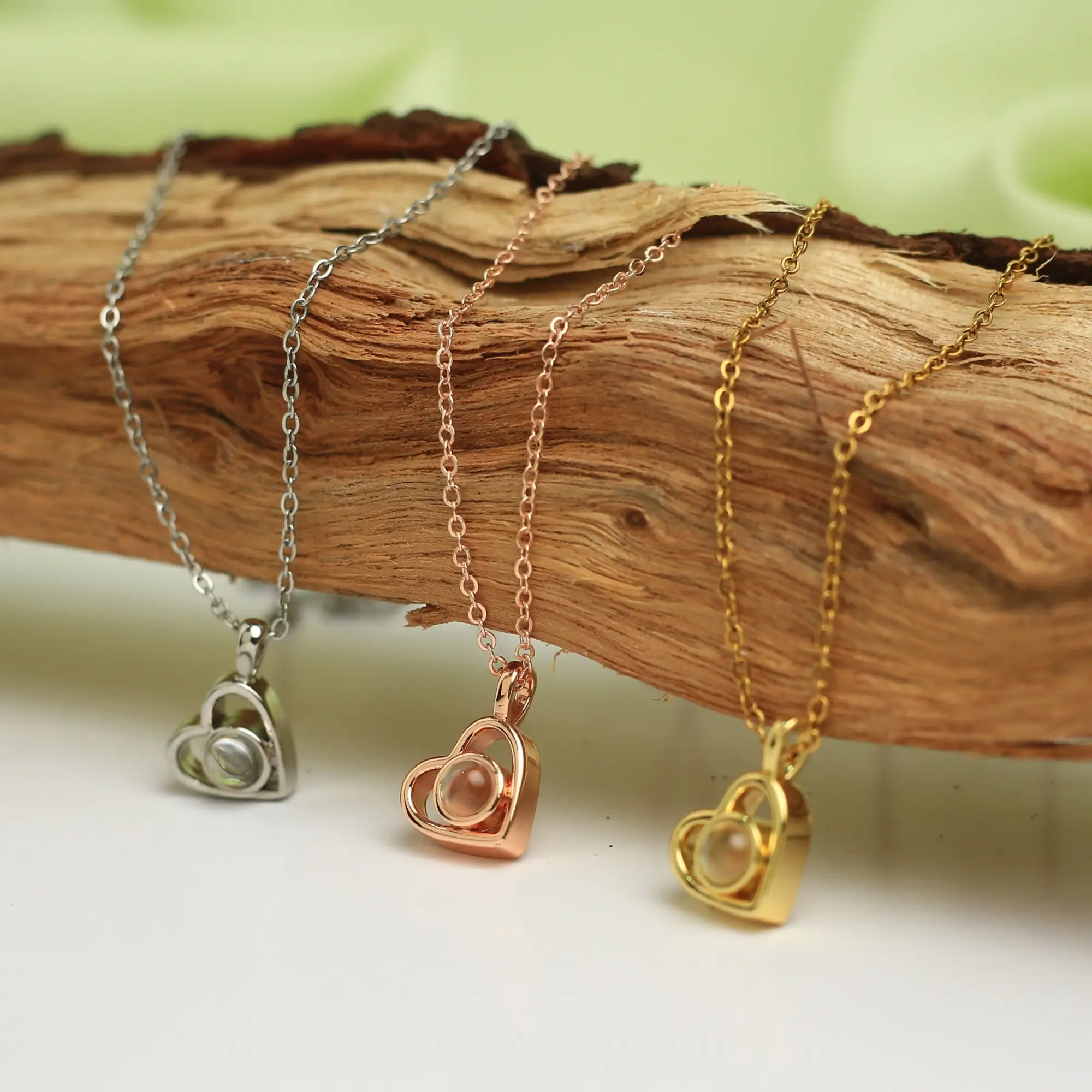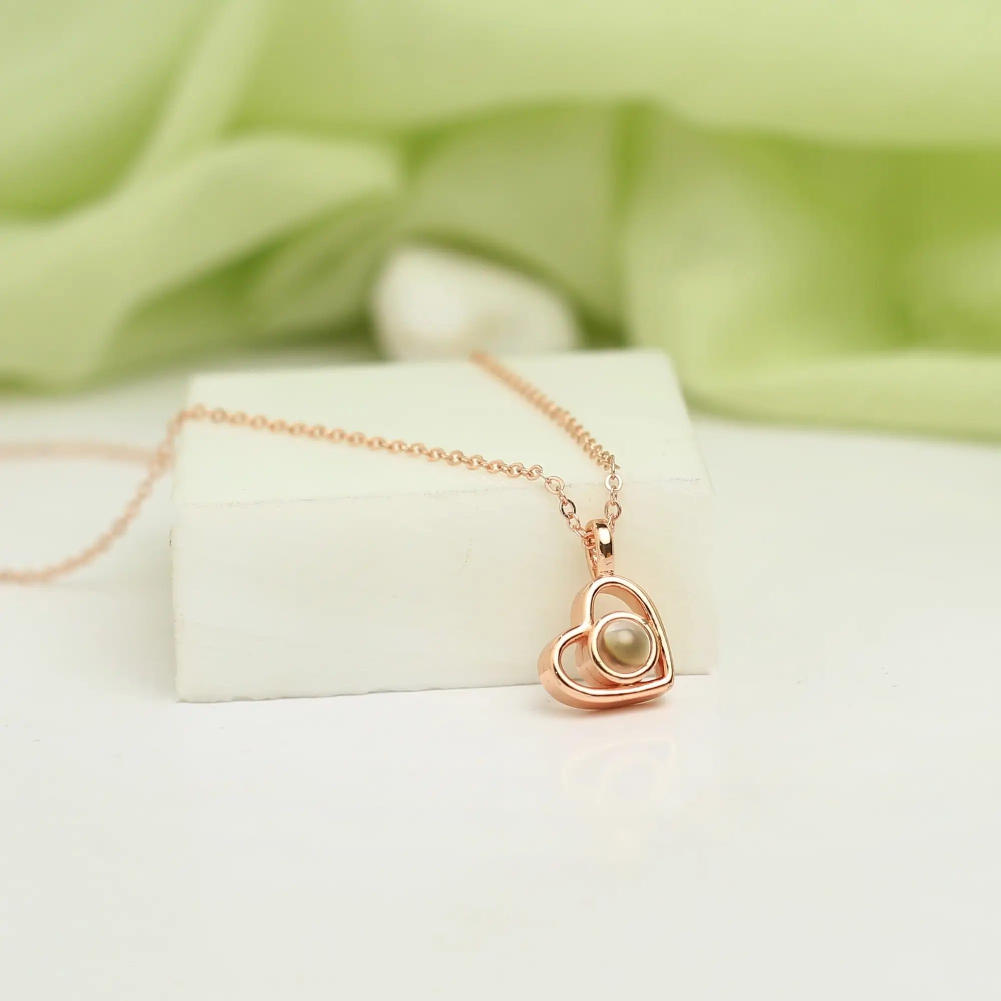 Delicate yet deeply meaningful, this heart projection necklace carries more than a shimmer — it holds a hidden photo inside, a memory meant only for you. Each curve of the heart reflects love, connection, and moments that never fade, while the secret projection inside keeps your most cherished image close to your heart, literally.