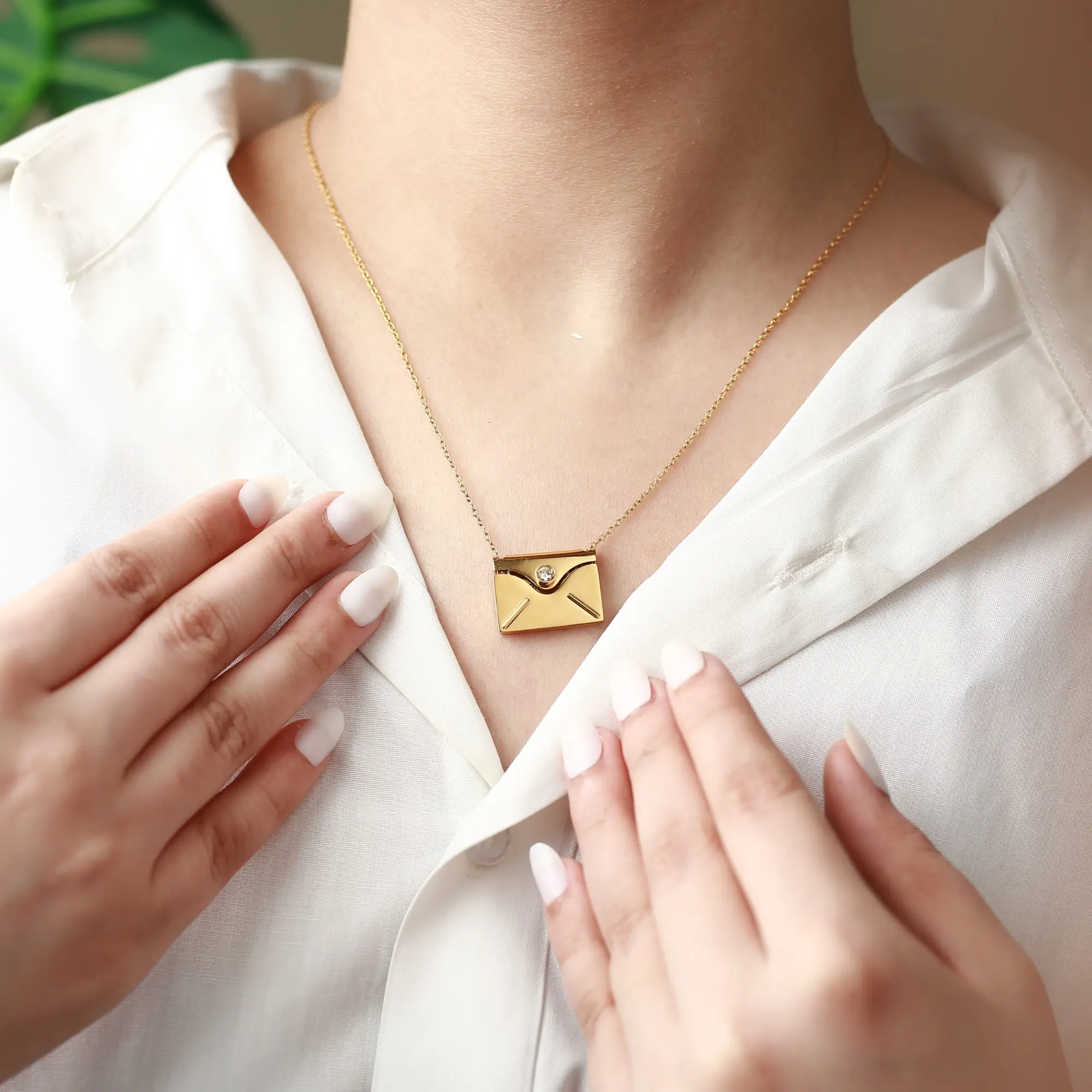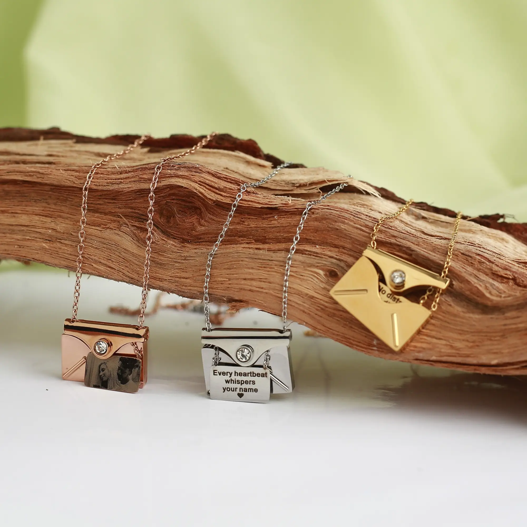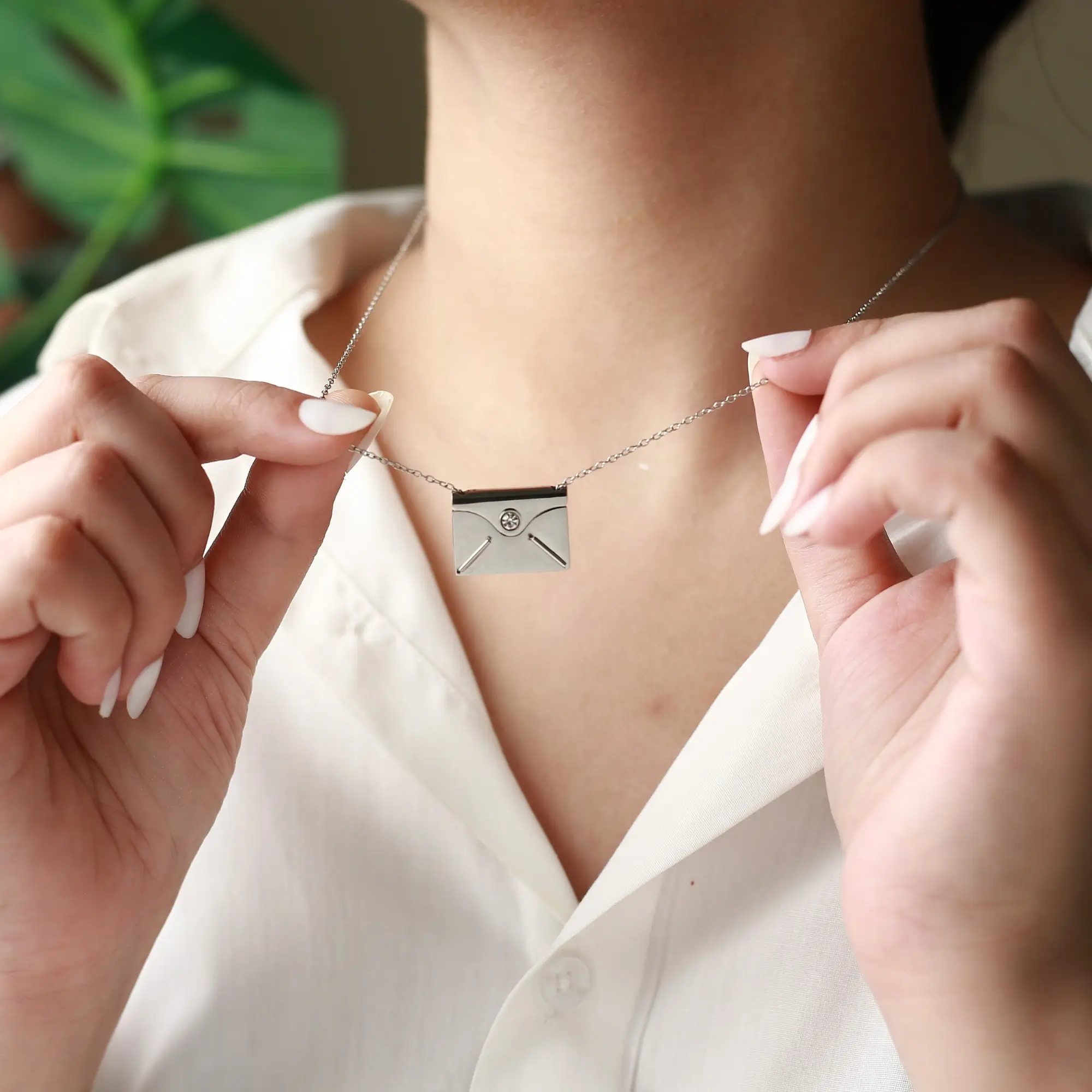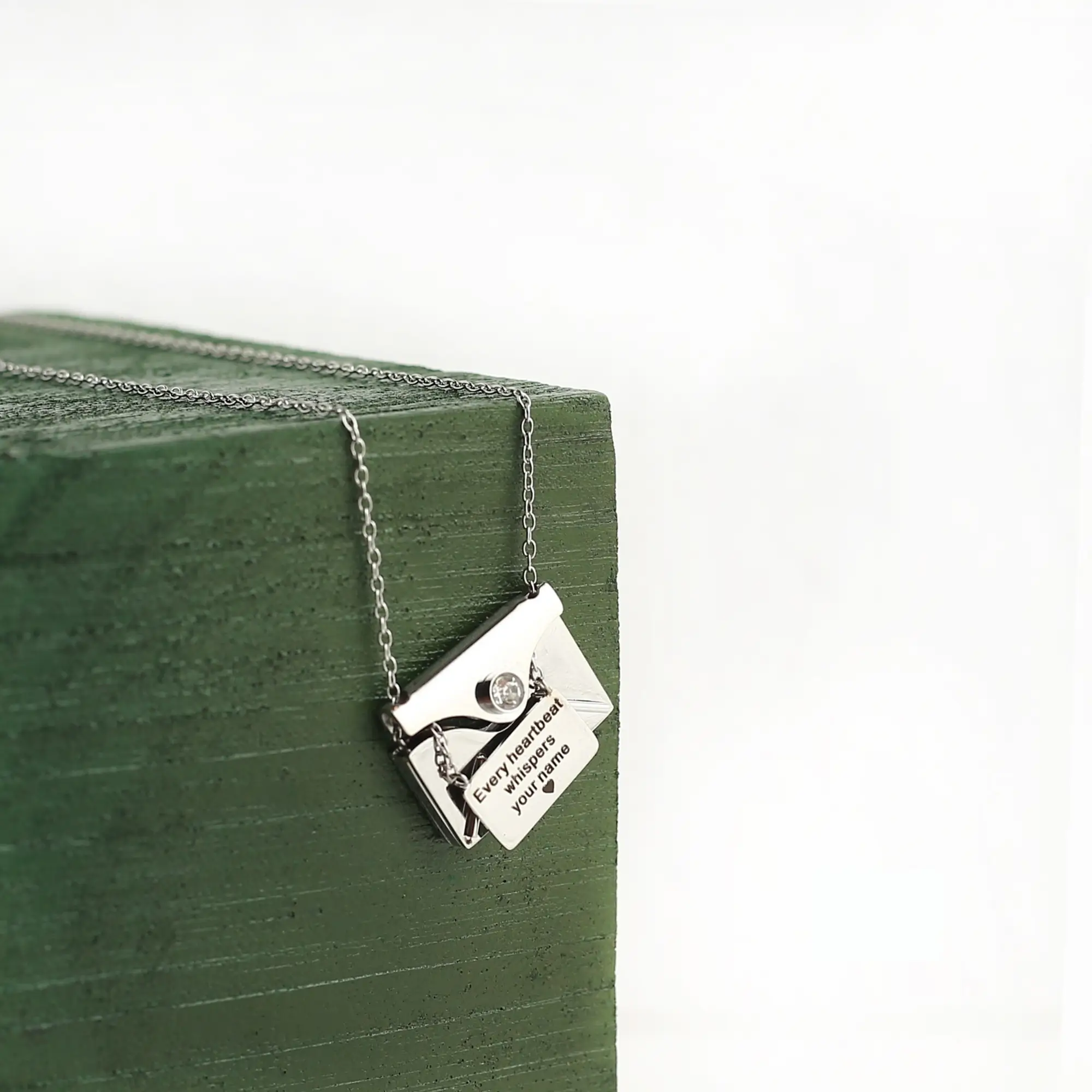 Like a love letter you never want to lose, this elegant envelope necklace hides your most precious memory inside — a secret photo or message revealed only by touch and light. Each detail captures the beauty of emotion, turning a simple pendant into a story carried close to your heart.