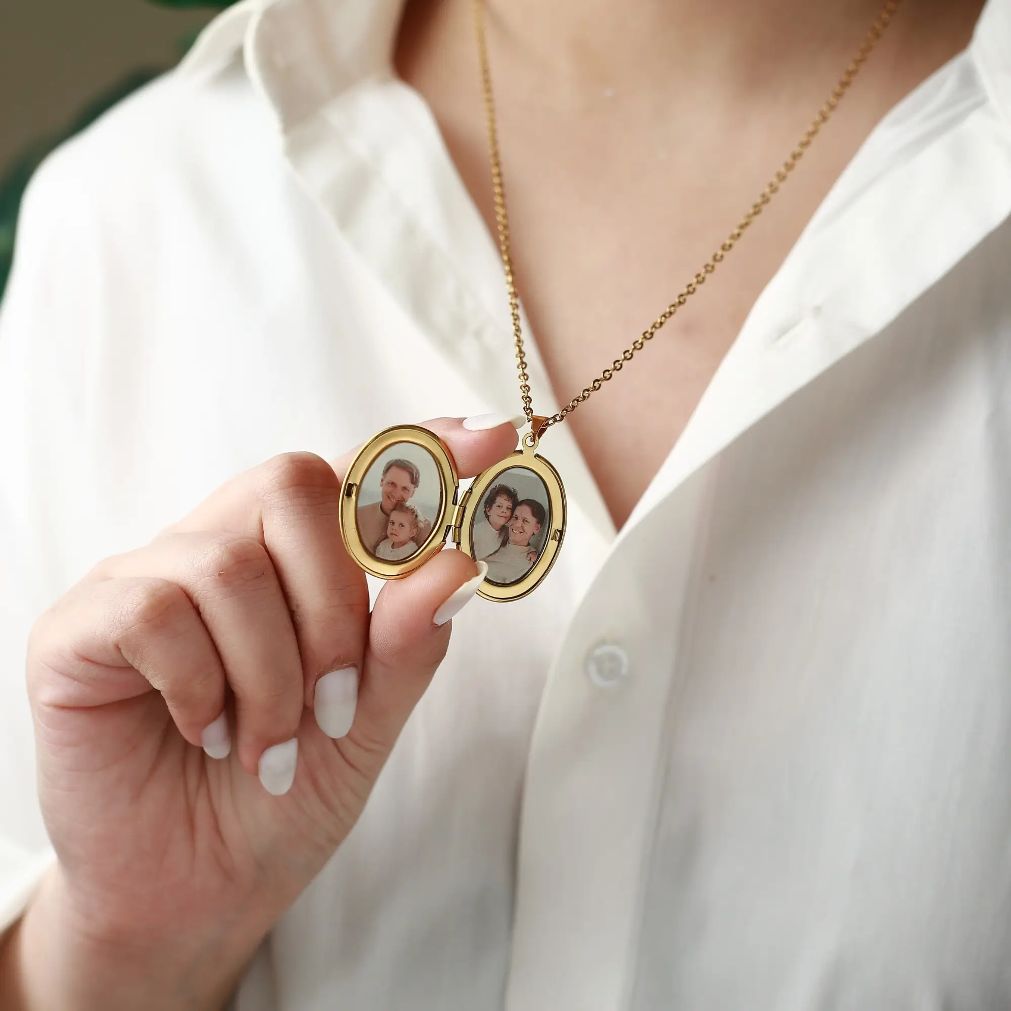Elegant and timeless, this oval necklace transforms your cherished photos into lasting engravings — one or two images beautifully etched in metal, capturing the people and moments that mean the most. Each piece tells a story, turning a single pendant into a treasure of love and memory.