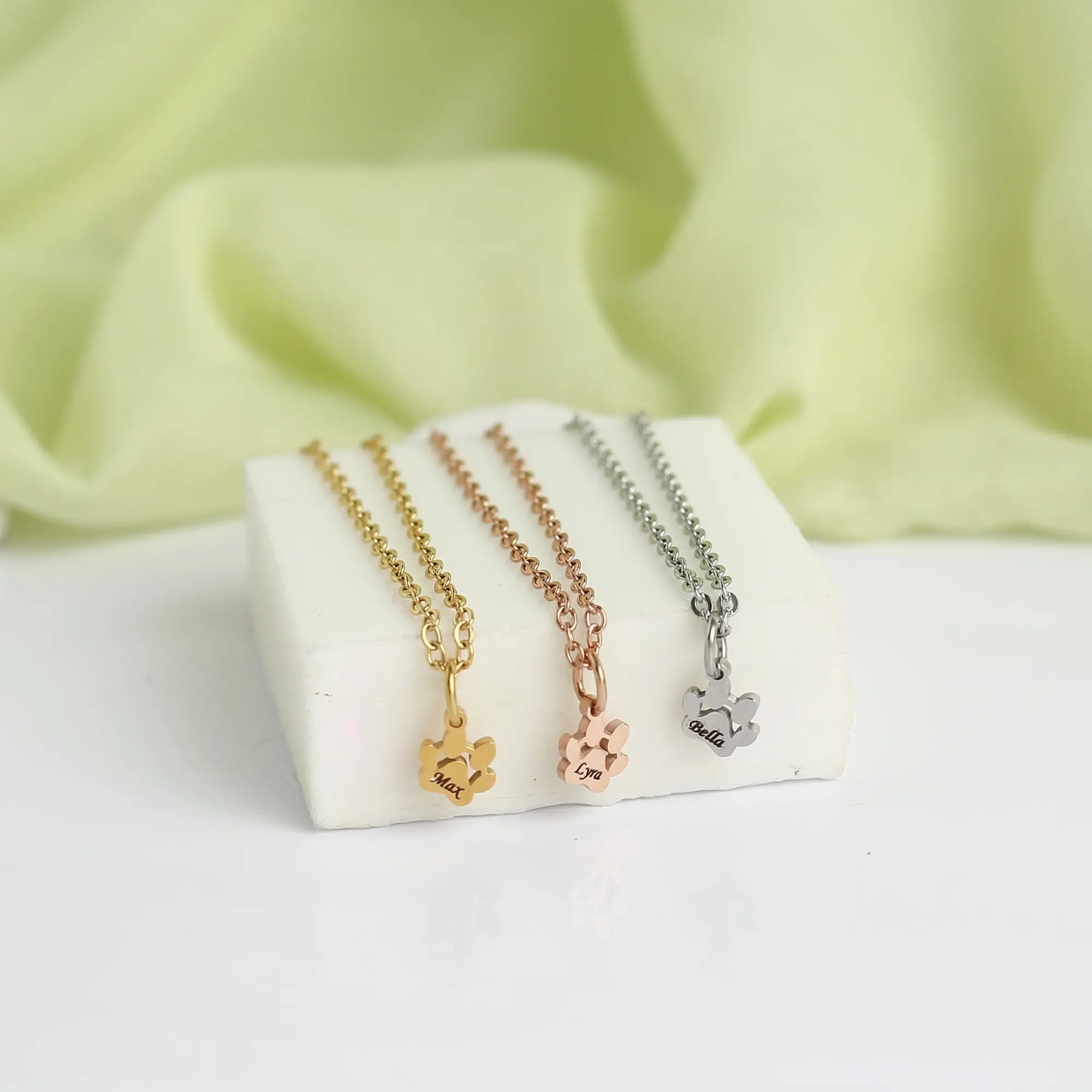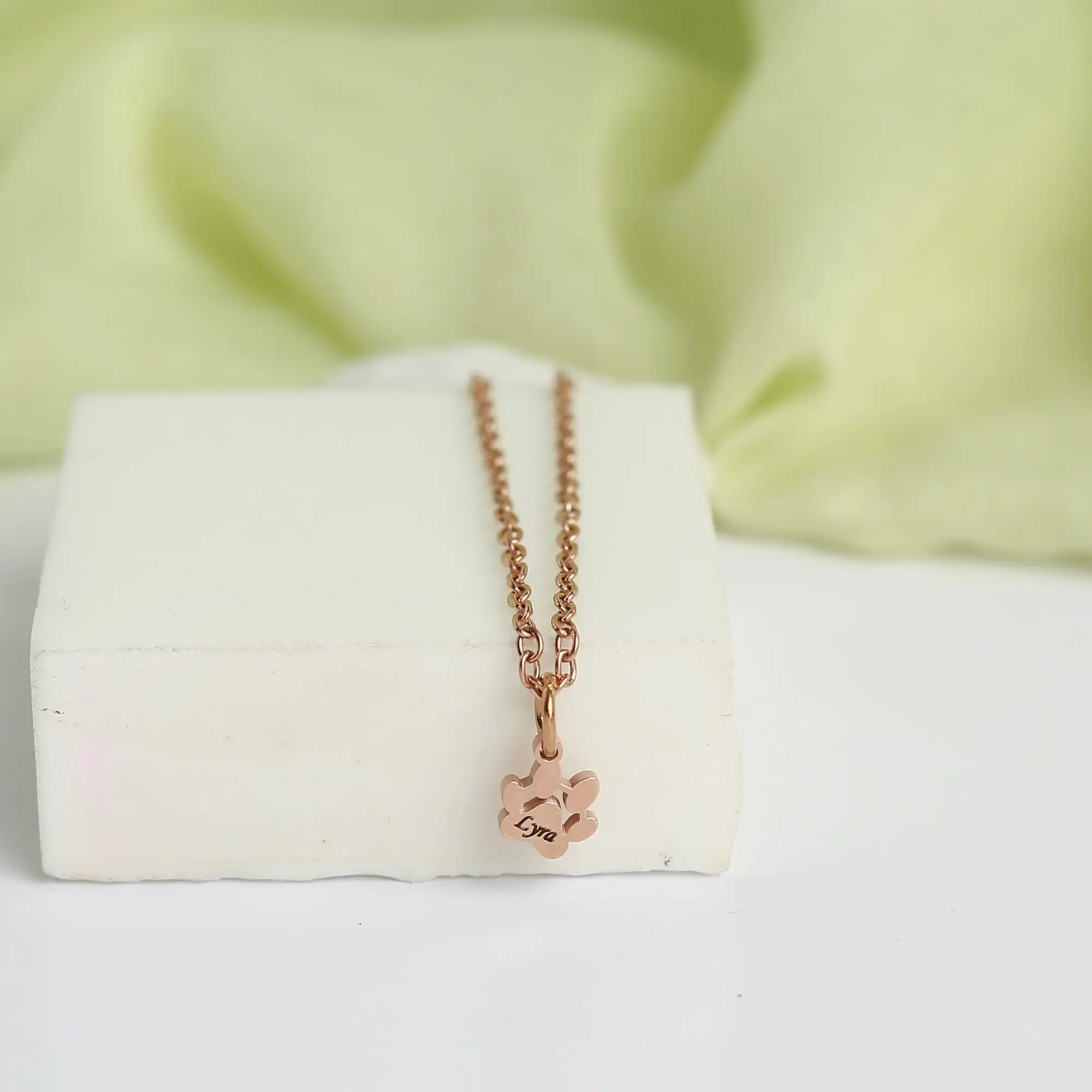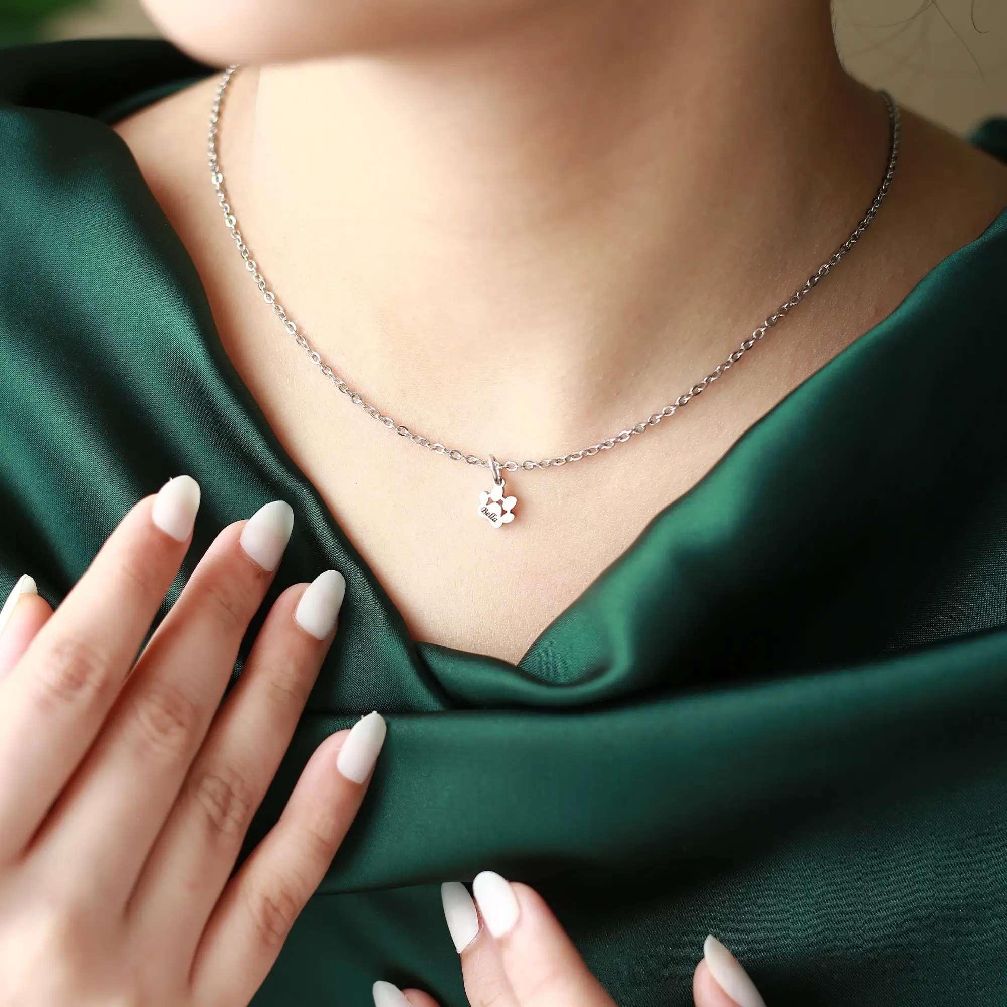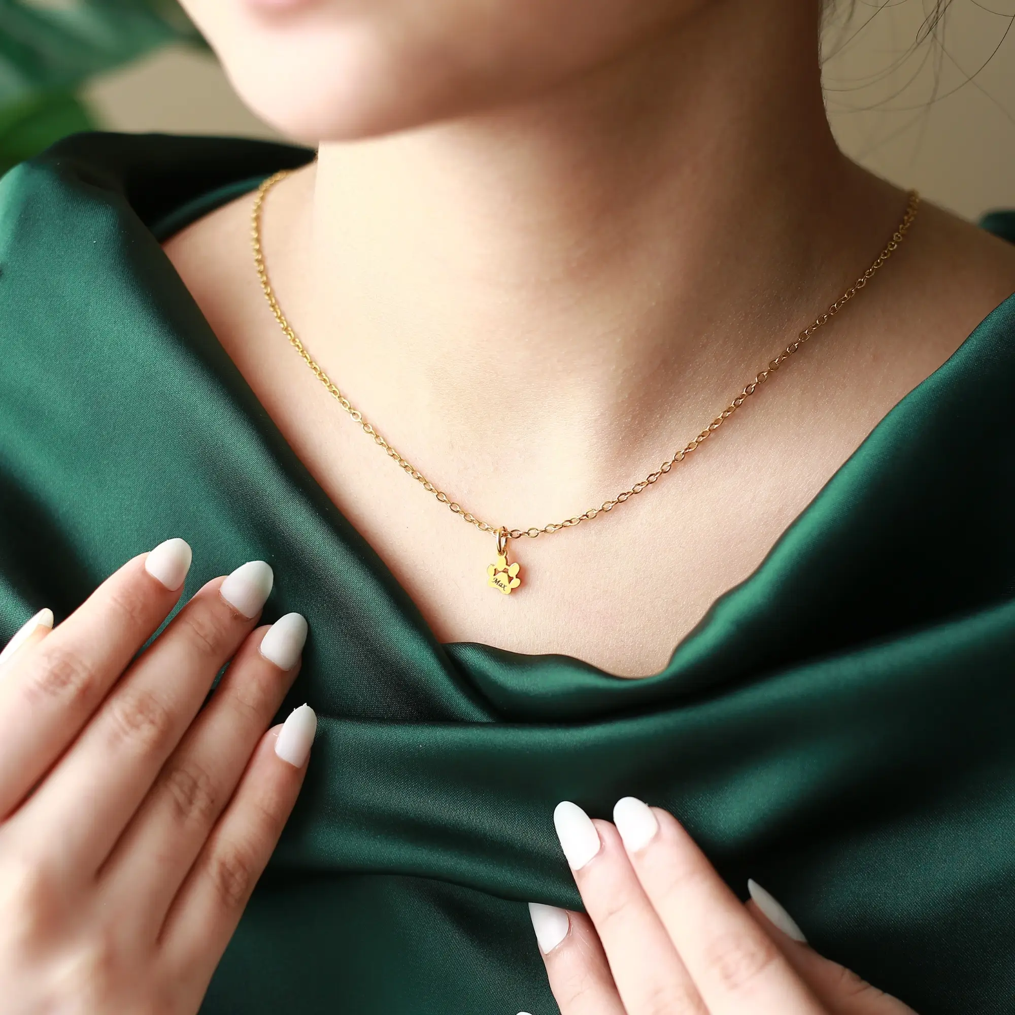 Some names mean more than words — they hold wagging tails, soft purrs, and moments that never fade. This personalized paw print necklace lets you engrave your pet’s name, turning love into something you can wear close to your heart. Each detail is crafted to honor the bond between you and your furry friend.