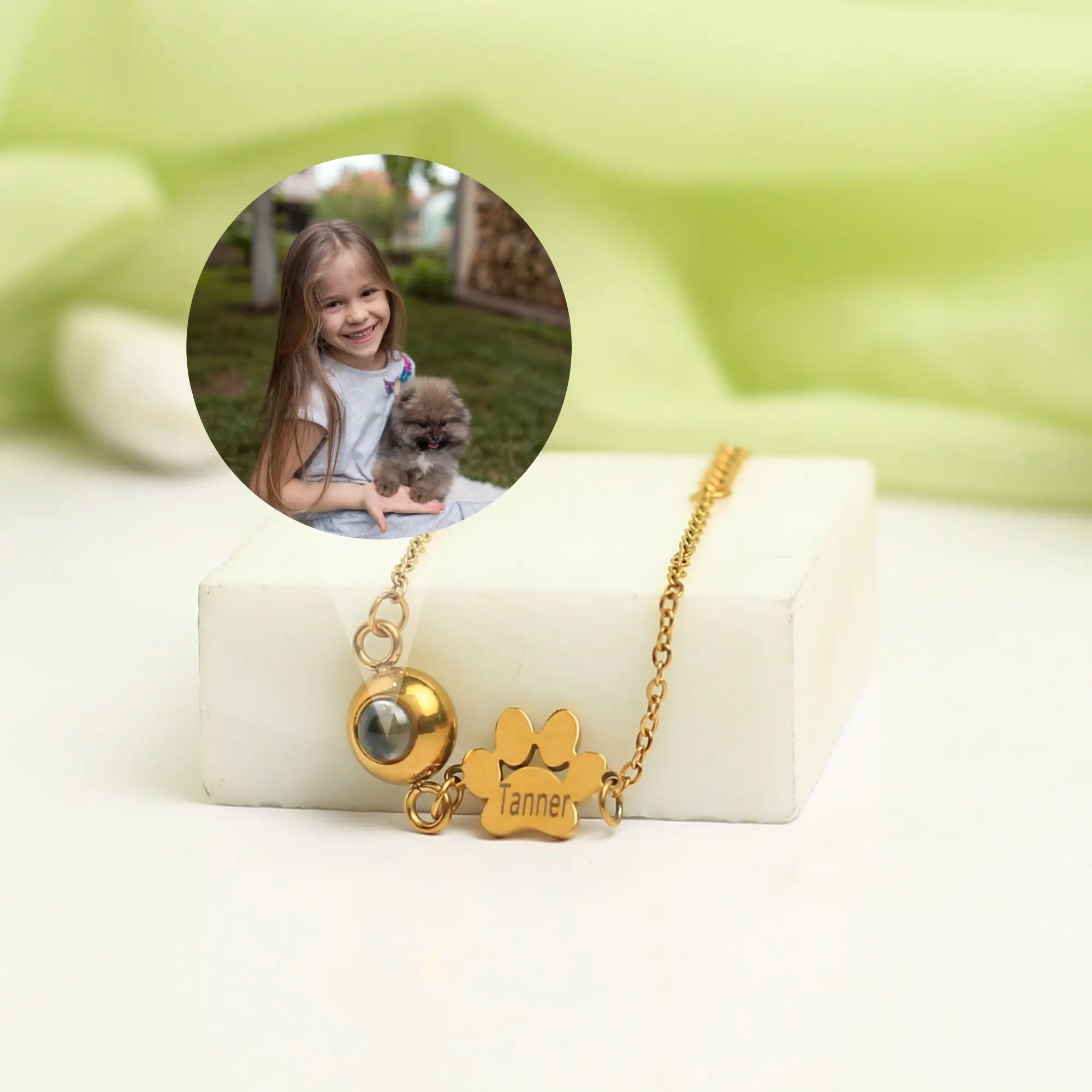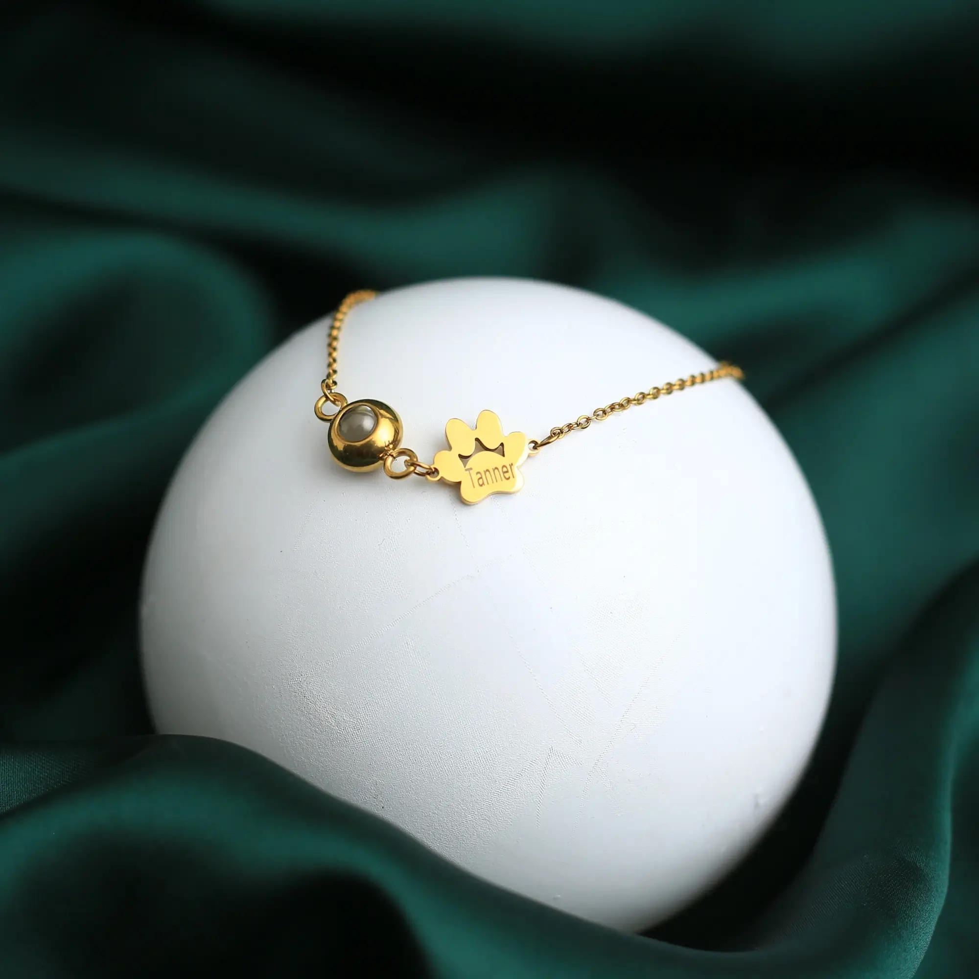 Delicately crafted with a paw charm, custom name engraving, and a personalized projection stone, it’s a tribute to unconditional love — one that never fades. Whether it’s a gift for a pet lover or a keepsake of your own companion, it reminds you that true love doesn’t end — it simply changes form.