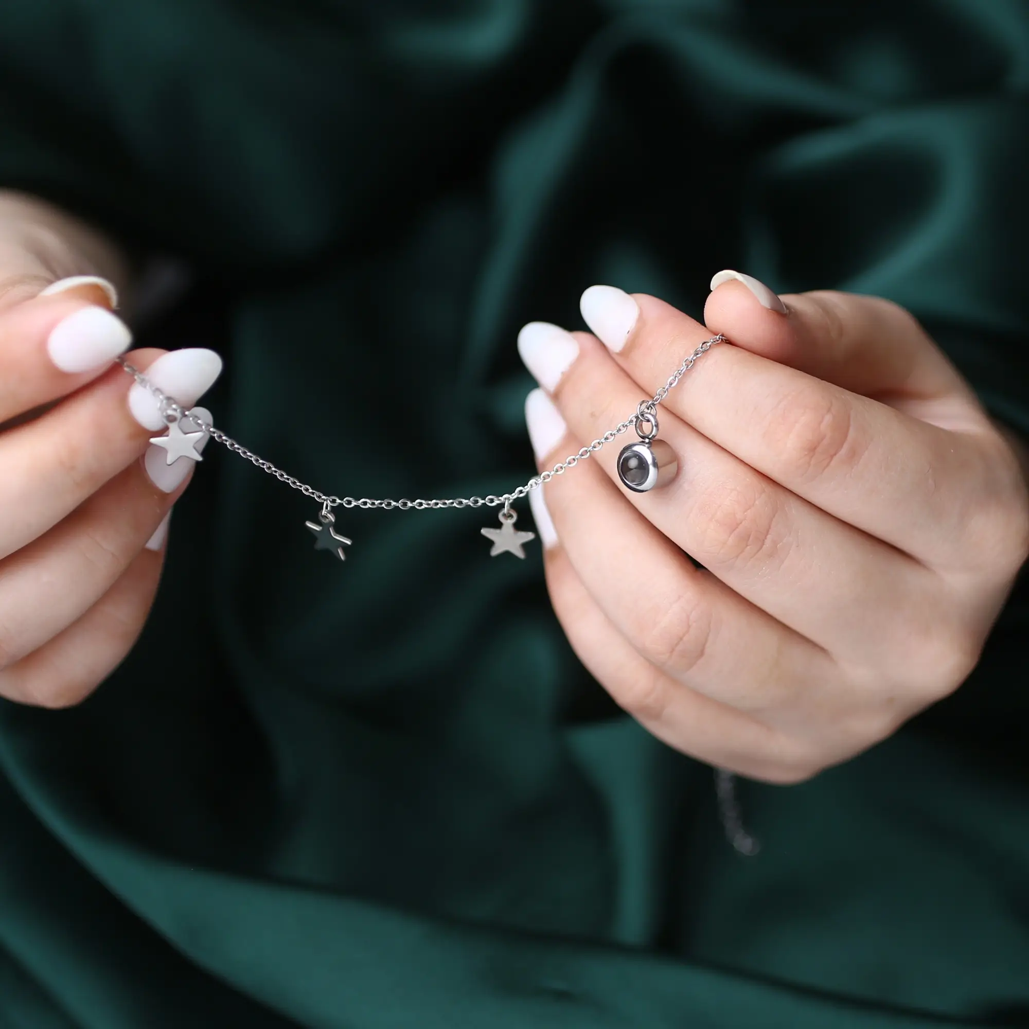 Delicate and elegant, this silver star charm bracelet carries more than beauty — it carries a hidden photo inside. A secret keepsake that lets you hold close the people, moments, or memories that guide you, just like a star lighting your way.