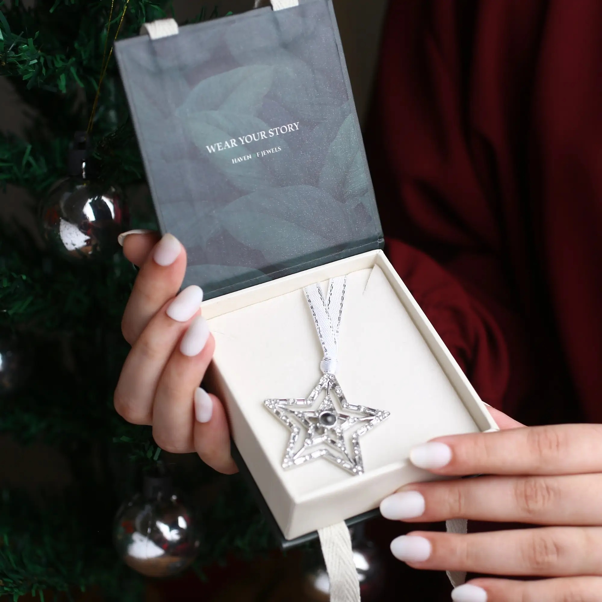 Timeless and elegant, this silver star ornament holds more than sparkle — it carries a hidden photo inside, projecting a cherished memory close to your heart. Whether it’s a loved one you’re celebrating or someone you deeply miss, this ornament adds both beauty and meaning to your holiday season.